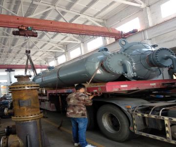 浮頭式換熱器一端管板固定在殼體與管箱之間,另一端管板可以在殼體內(nèi)自由移動(dòng),也就是殼體和管束熱膨脹可自由。故管束和殼體之間沒(méi)有溫差應(yīng)力。一般浮頭可拆卸,管束可以自由地抽出和裝入。浮頭式換熱器的這種結(jié)構(gòu)可以用在管束和殼體有較大溫差的工況。管束和殼體的清洗和檢修較為方便,但它的結(jié)構(gòu)相對(duì)比較復(fù)雜,對(duì)密封的要求也比較高。